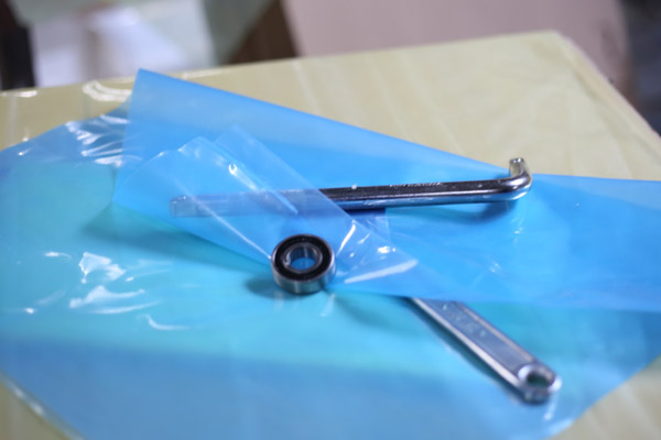 4、包裝過(guò)程---被包裝金屬和防銹膜中間,如有紙墊板、木類(lèi)、塑料類(lèi)隔板等阻隔材料,特別注意阻隔材料不能直接接觸金屬產(chǎn)品。以免阻隔材料含S、CL化學(xué)成分,影響防銹效果
