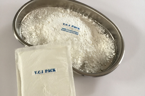氣相防銹粉末多種特制的氣相緩蝕劑原料按一定配比均勻混合加工而成,具有水溶性,是一種新型的氣化性防銹材料。在密閉空間內(nèi),VCI經(jīng)氣化揮發(fā)到金屬的每個角落,吸附在金屬表面形成致密保護(hù)膜層從而起到防銹的作用