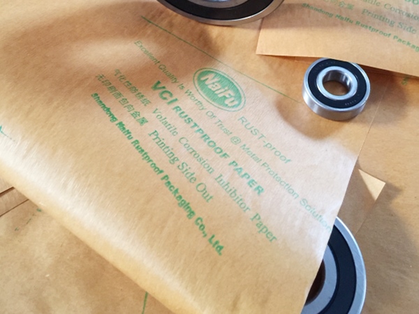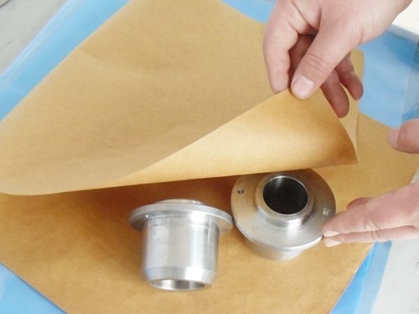 4、包裝過(guò)程---將含有緩蝕劑的面朝向金屬包裝,不覆膜防銹紙可作為金屬產(chǎn)品間墊層隔材使用,以免其他材質(zhì)阻隔材料含S、CL化學(xué)成分,影響防銹效果